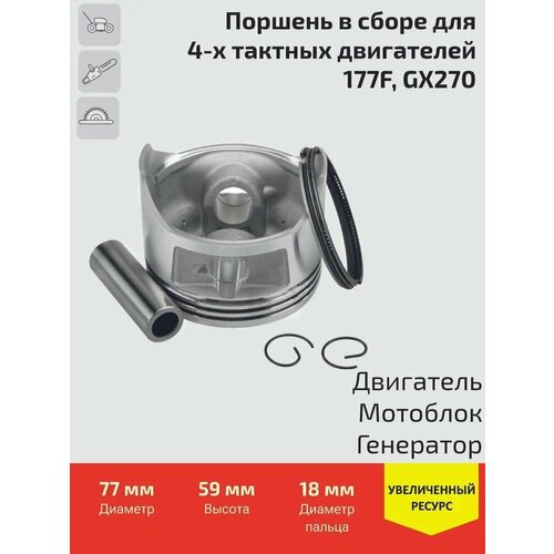 Поршень для 4-х тактного двигателя 177F в сборе, для Мотоблоков, Культиваторов, Мотопомп, Генераторов, высокого качества