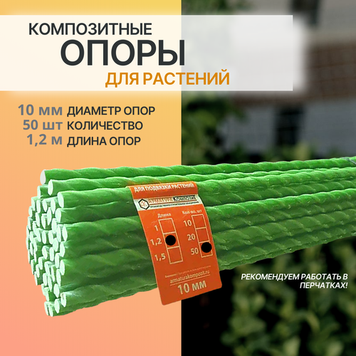 Опоры для растений 10 мм 50 штук по 1 ,2 м композитные (колышки)