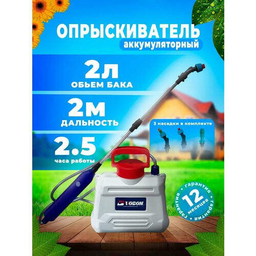 Опрыскиватель садовый аккумуляторный 8 л, 2400 мАч, 3 насадки, синий