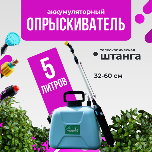 Опрыскиватель аккумуляторный садовый, с ремнем , объем 5 литров