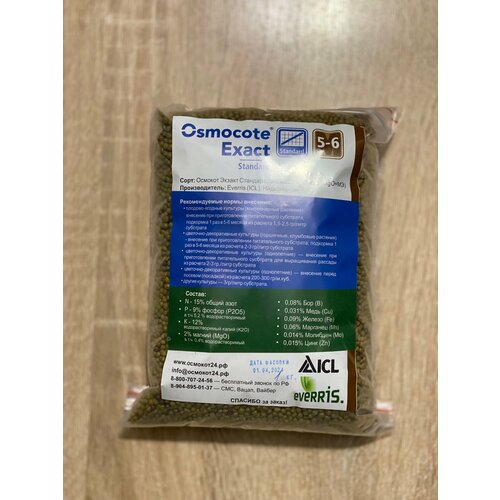 Удобрение 1кг Осмокот Экзакт Стандарт 5-6 месяца, оригинал (15-9-12+2MgO+TE), Нидерланды, ручная фасовка