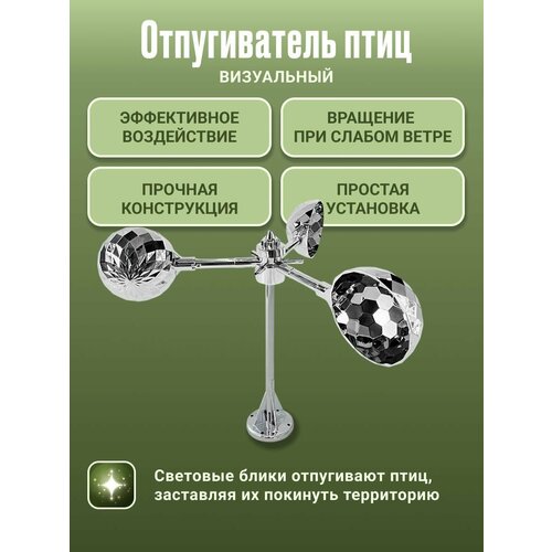 Отпугиватель птиц, зеркальный, ветряной, пластиковый с магнитным основанием, серебристый