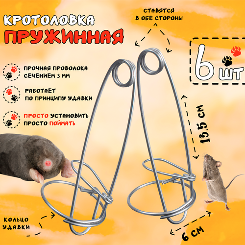 Кротоловка проволочная, капкан для кротов, Планета Садовод, Серый, 6 штуки