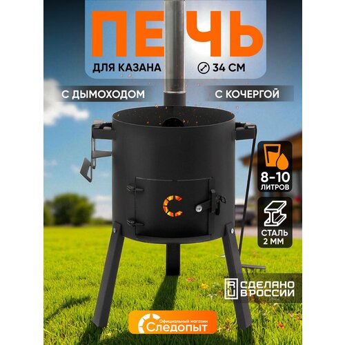 Печь для казана 8 л, диаметр 33 см, сталь 2 мм, с трубой и дверцей, съемные ножки