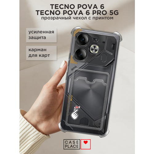 Чехол на Tecno Pova 6/6 Pro 5G (Текно Пова 6/6 Про) с картой и принтом Саранхулька, сердце пальцами