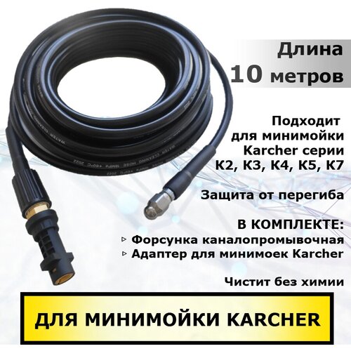 Шланг для промывки труб и прочистки канализации 10 метров для минимоек KARCHER серии К2 - К7