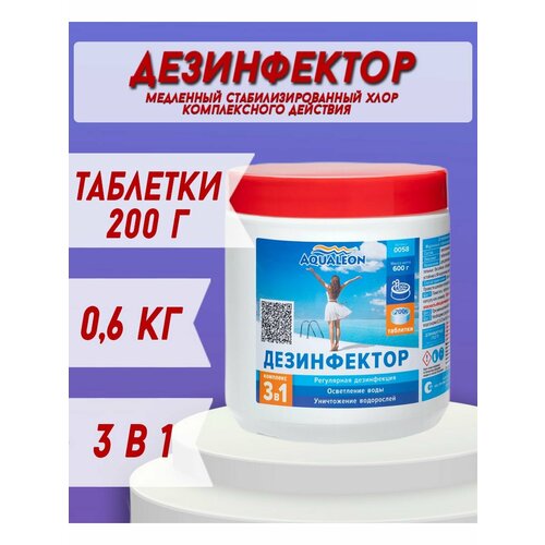 Медленный стабилизированный хлор Aqualeon таблетки 200 гр. 0,6 кг 9543762