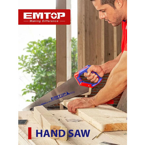 Пила садовая ручная EMTOP ножовка по дереву 500 мм 7 TPI 3D заточка 65 Mn