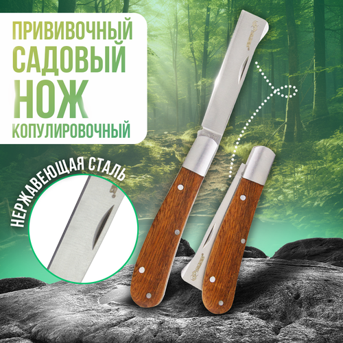 Нож садовый прививочный складной с нержавеющим лезвием / 170 мм.