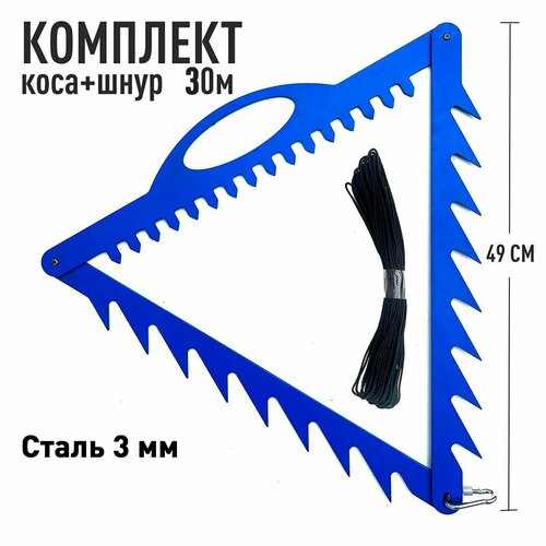 Коса ручная для травы, водорослей, подводной травы и донного мусора, сталь 3мм. синий + Шнур 30м