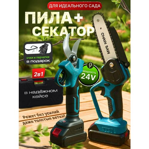 Набор садовода, цепная пила (аккумуляторная) и секатор (аккумуляторный)