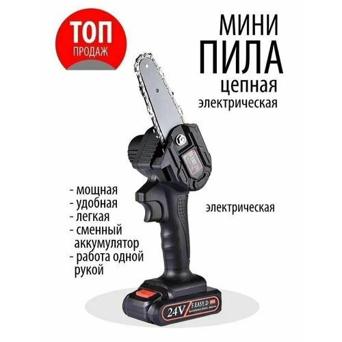 Цепная мини пила аккумуляторная кусторез. 24v. Веткорез аккумуляторный. Легкая обрезка сучков и веток. Беспроводная Пила Садовая Электрическая