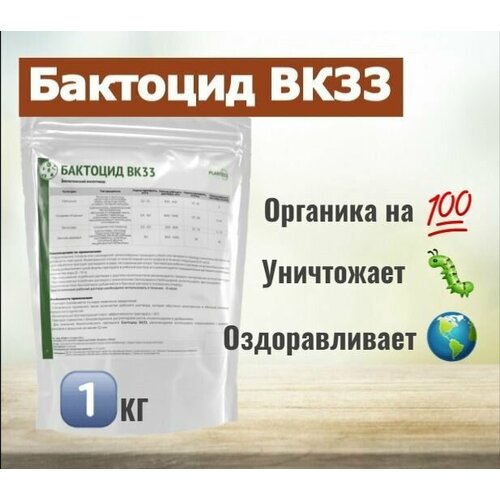 Биоинсектицид Бактоцид ВК33 для борьбы с чешуекрылыми насекомыми-вредителями овощных, плодово-ягодных и декоративных культур, 1 кг Planteco