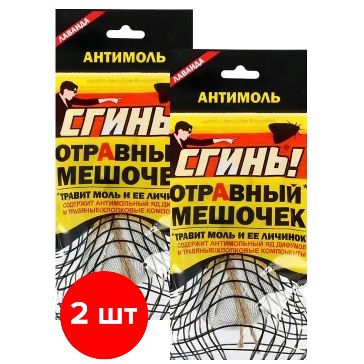 Средство от моли, Антимоль, СГИНЬ!, Отравный мешочек, 4640259901923, 2шт 600013519489