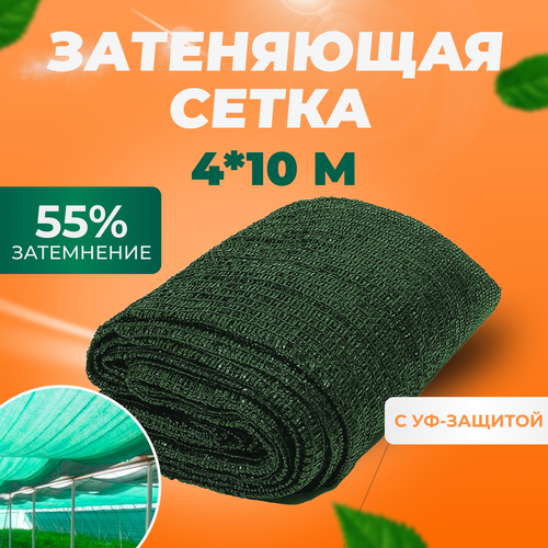 Сетка затеняющая фасадная 55 %, 4х10м для теплиц, забора, растений, от солнца, для огорода, для навеса