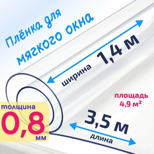 Пленка ПВХ для мягких окон прозрачная / Мягкое окно, толщина 800 мкм, размер 1,4м * 3,5м