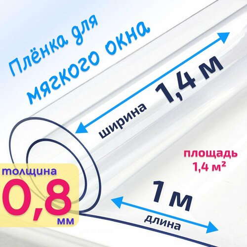 Пленка ПВХ для мягких окон прозрачная / Мягкое окно, толщина 800 мкм, размер 1,4м * 3,5м