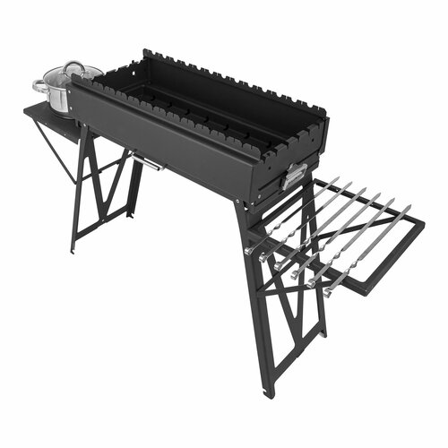 Столик приставной 2 шт для мангала Дипломат Профи KOLUNDROV из металла, полка для гриля и барбекю, подставка для шампуров, казана, сковороды и кастрюли