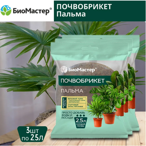 Комплект Почвобрикет Пальма, БиоМастер 2,5 л 3 штуки
