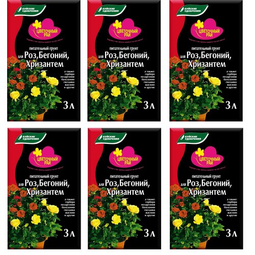 Грунт питательный "Цветочный рай" для роз, бегоний, хризантем 18 л (6 шт по 3 л)