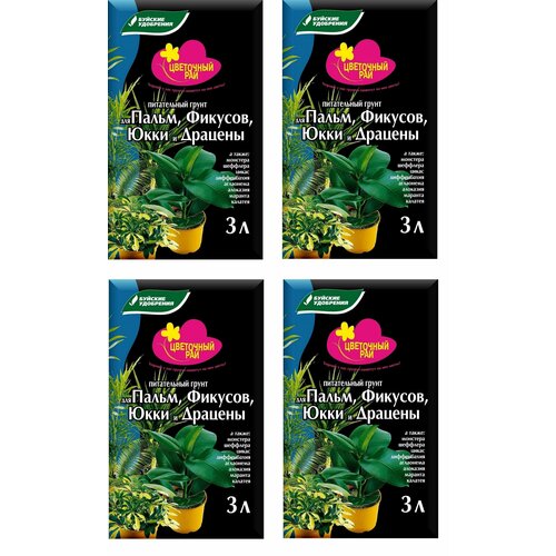 Грунт питательный "Цветочный рай" для пальм, фикусов, юкки и драцены 12 л (4 шт по 3 л)