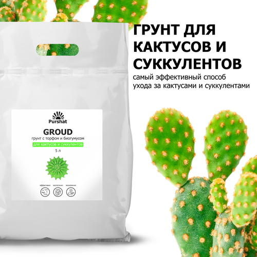 Грунт (земля) для кактусов и суккулентов Пуршат. Почвогрунт с торфом и биогумусом для удобрения (Purshat) 5 л