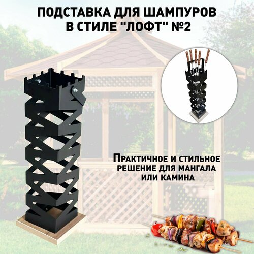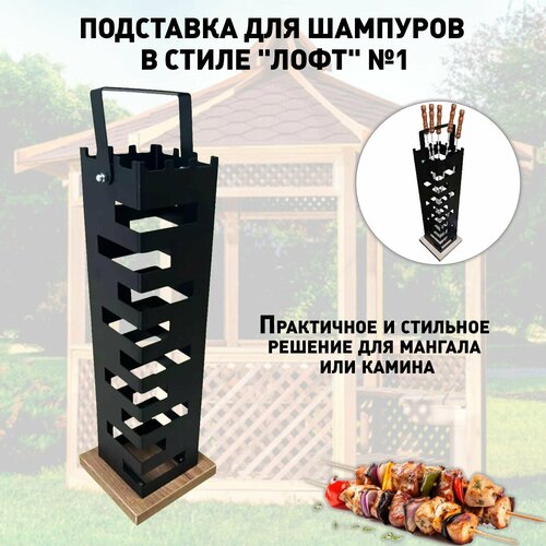 Лофт», который является неотъемлемой частью современных интерьеров. Используя смелые геометрические формы и комбинируя яркие металлические и деревянные элементы, данное изделие создает поистине футуристическую атмосферу. Каждая деталь подставки для шампуров изготовлена с превосходным качеством и максимальным вниманием к деталям. Изготовленная из высококачественной стали, она гарантирует надежность и долговечность данного изделия. Благодаря своему сочетанию современности и классических элементов, она станет прекрасным дополнением к вашей коллекции кухонных принадлежностей.
