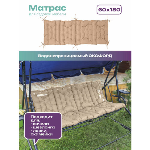 Матрас для садовых качелей Bio-Line, матрас для шезлонга, на кушетку, 60х180 см, влагостойкий, на завязках