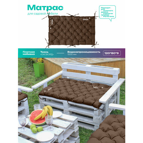 Подушка-матрас для мебели и поддонов, матрас на подоконник 80 х 120см, водонепроницаемый, на завязках, коричневый