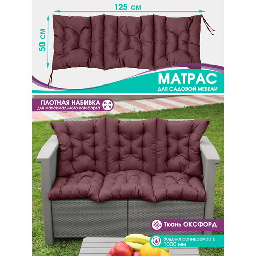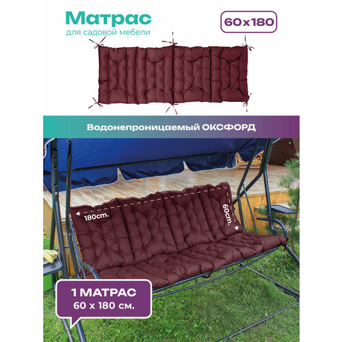 Матрас для садовых качелей Bio-Line, матрас для шезлонга, на кушетку, на кушетку, 60х180 см, влагостойкий, на завязкахбордо