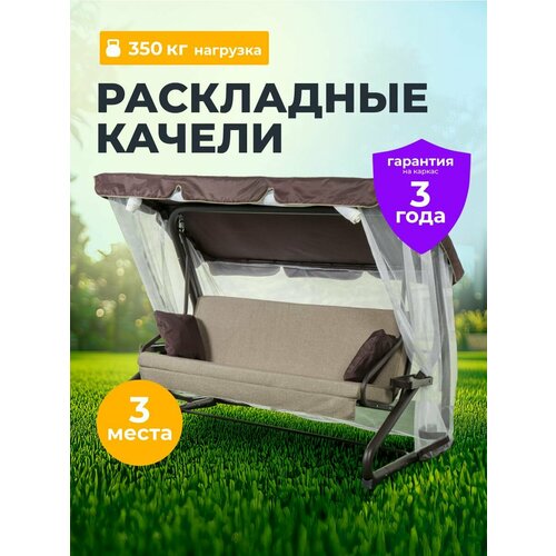 Качели садовые 3-х местные с москитной сеткой, до 350 кг, Вена