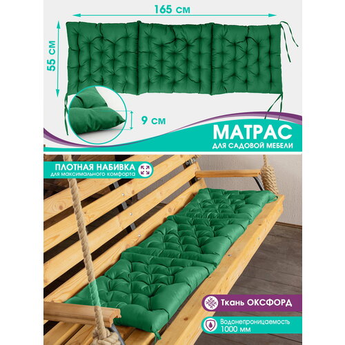 Подушка - матрас для садовых качелей, на кушетку, для шезлонга, для подвесного кресла, на скамейку, Bio-line 55х165, зеленый