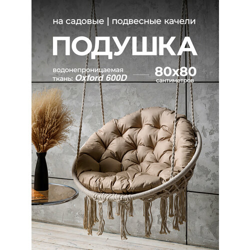 Подушка для подвесного кресла, круглая 80см, на качель "гнездо", Bio-Line, оксфорд 600d, коричневая