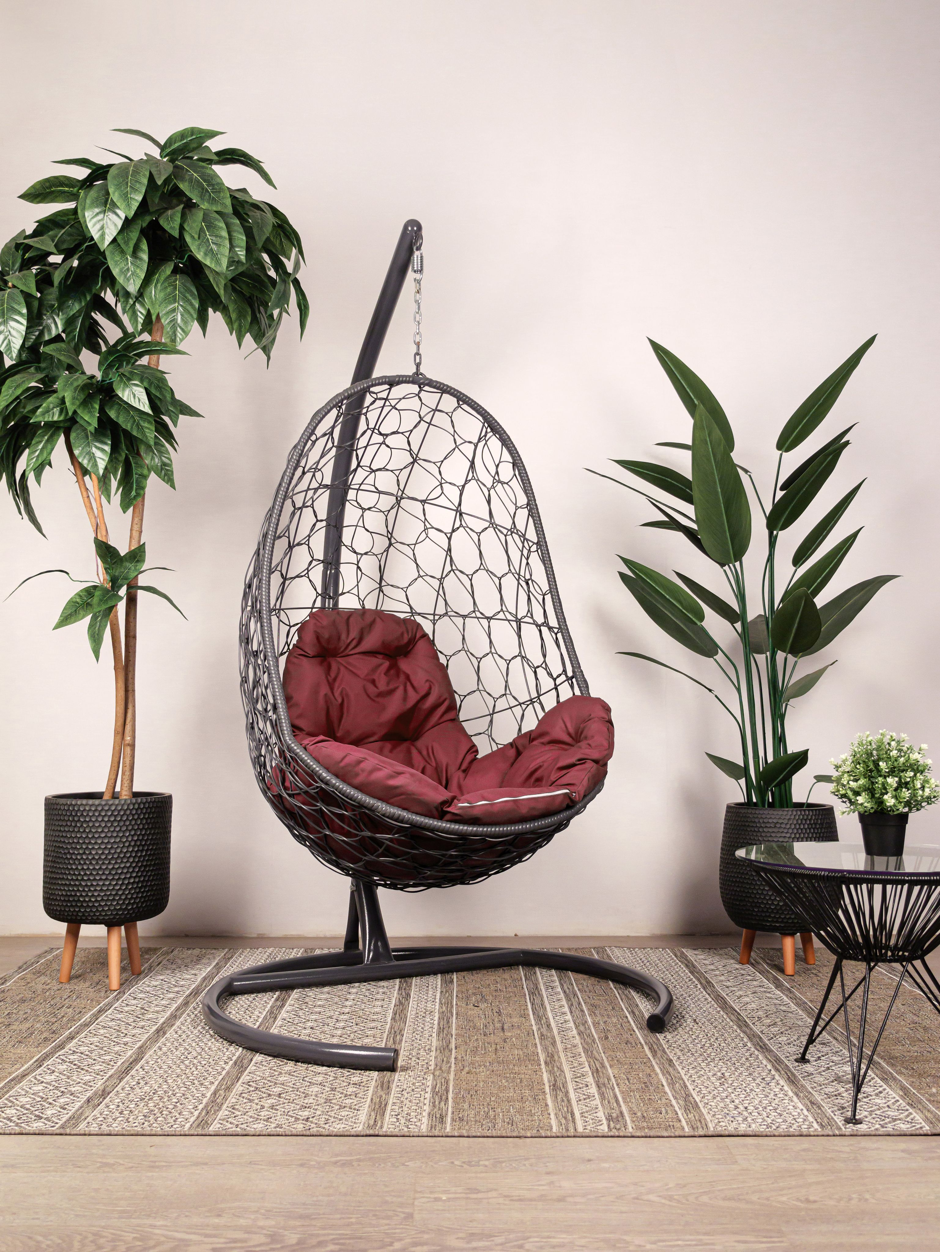 Подвесное кресло серое, Овальное ротанг 23071546 бордовая подушка 600013795462