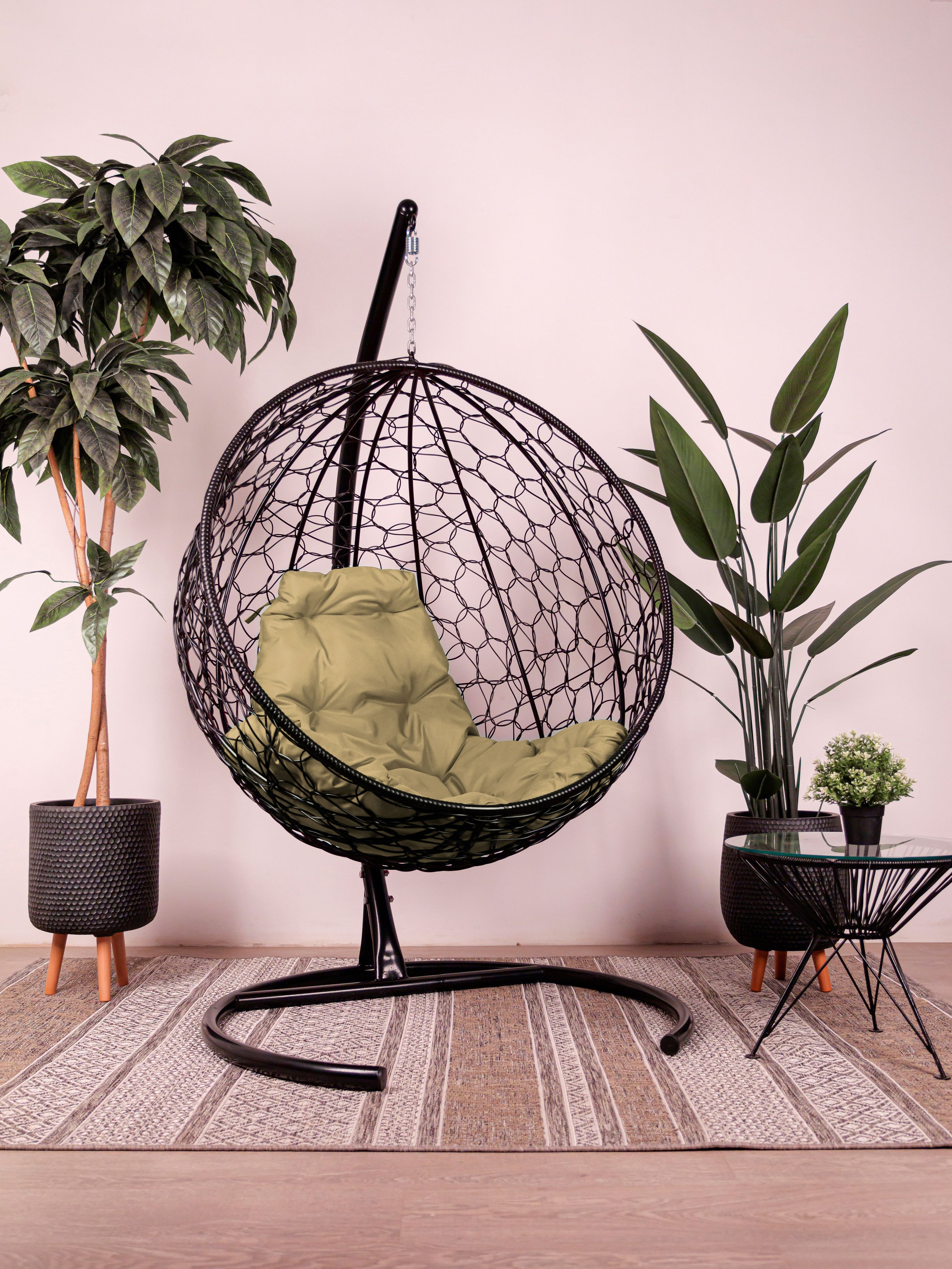 Подвесное кресло чёрное, без ротанга 23071723 зелёная подушка 600013795241