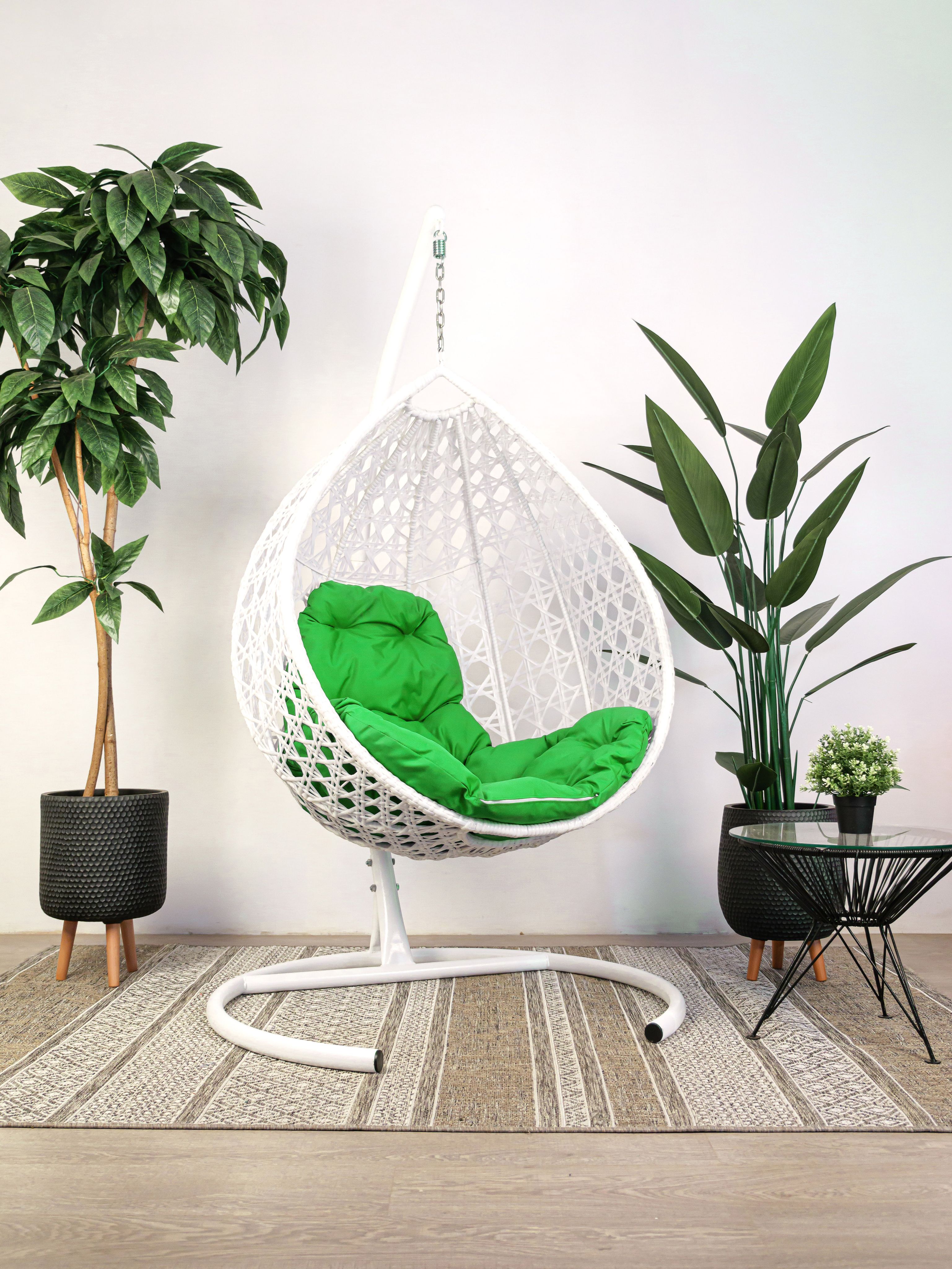 Подвесное кресло белое, Премиум, ротанг 23071568 зелёная подушка 600013784394