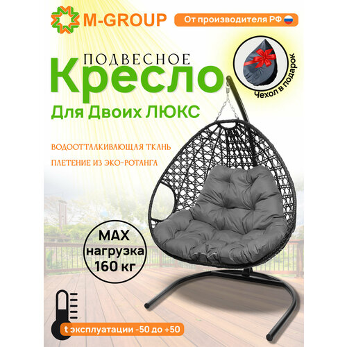 Подвесное кресло черное Для двоих люкс синяя подушка
