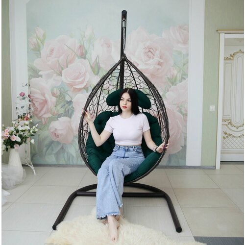Подвесное кресло кокон"Сфера" цвет кокона: Шоколадный ; цвет подушки: Зеленый В*Ш*Г(122*98*73)