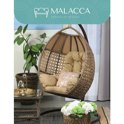 Подвесное кресло, Качели подвесные, Качели гнездо для сада, дачи, (Ш950хГ750хВ2000 мм), Касабланка MALACCA кокон бежевый (коричневая подушка)