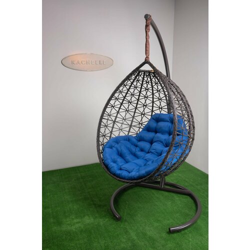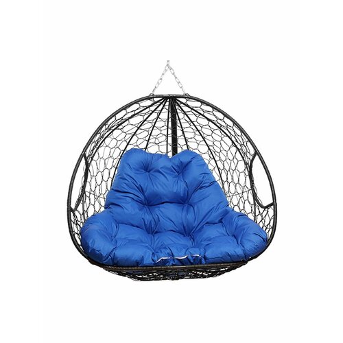 Подвесное кресло для двоих (без стойки), с ротангом чёрное, синяя подушка