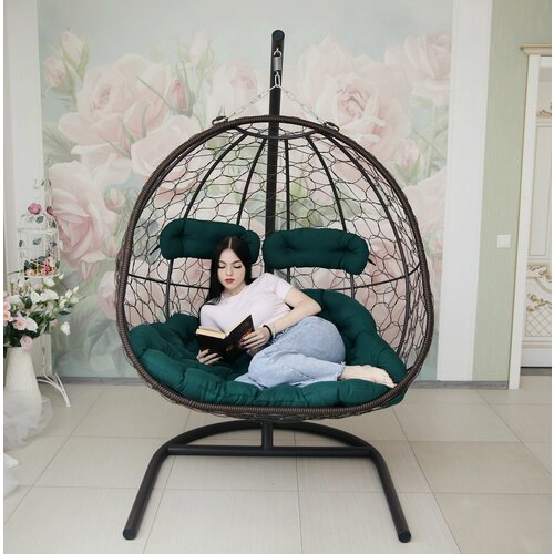 Подвесное кресло кокон "дарина" цвет кокона: Шоколадный; цвет подушки: Зеленый В*Ш*Г(124*127*80)