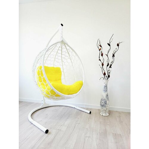 Подвесное кресло для дома и сада 100х106х175 см, Like Ажур. Кресло белое, подушка трапеция лимоновая. Подвесное кресло/ Качели садовые/ Кресло садовое подвесное/ Садовые качели/ Качели подвесные/ ПодОгурец Конкурент, 0,3г, Удачные семена, серия ХИТ (1 уп)