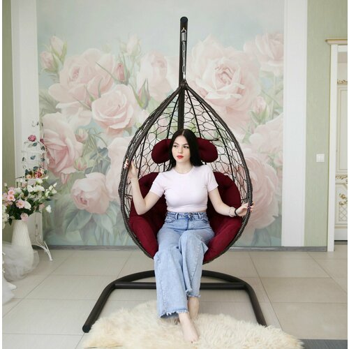 Подвесное кресло-кокон "Сфера" цвет кокона: Шоколадный ; цвет подушки: Бордовый В*Ш*Г(122*98*73)шоколадный ротанг