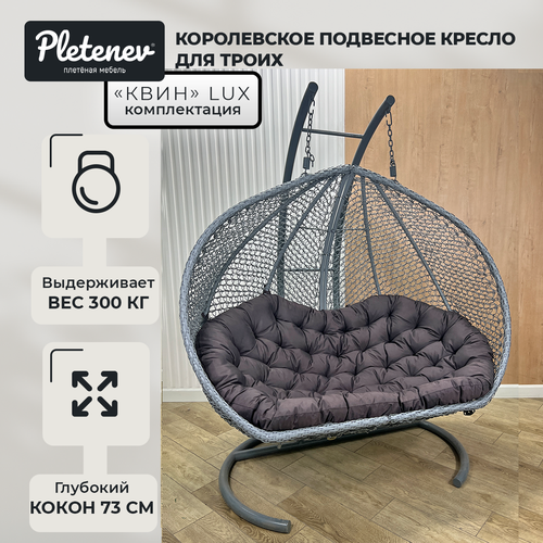 Подвесное кресло Queen трехместное Серое с Коричневой водоотталкивающей подушкой