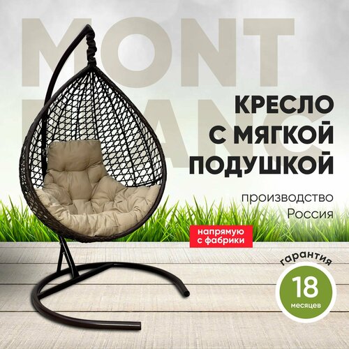 Подвесное кресло-кокон MONTBLANC COMFORT коричневый + каркас (бежевая подушка)