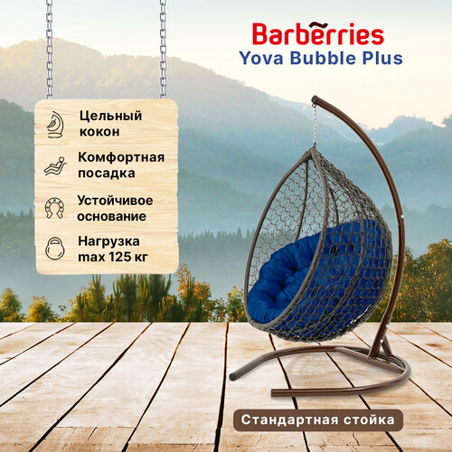 Подвесное кресло кокон садовое Barberries Yova Bubble Plus. Cтойка венге до 125 кг, подушка круглая синяя