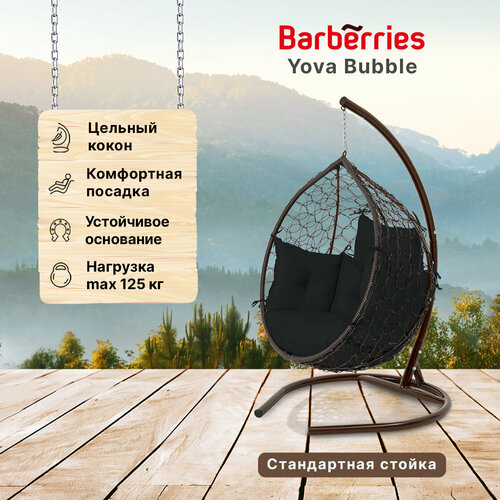Подвесное кресло кокон садовое Barberries Yova Bubble. Стойка венге до 125 кг, подушка комфорт черная
