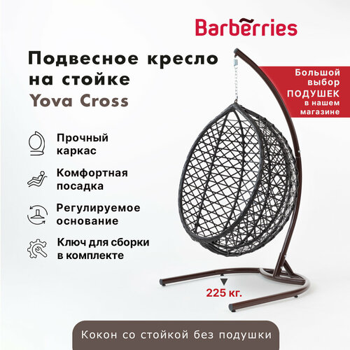 Садовое подвесное кресло кокон из ротанга на усиленной стойке Yova Cross. до 225кг, коричневое/венге
