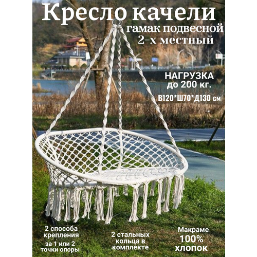 Кресло-гамак CoolWalk, двухместное, плетеное, натуральный хлопок, 120х70х130см