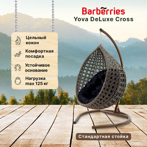 Подвесное кресло кокон садовое Barberries Yova DeLuxe Cross. Стойка венге до 125 кг, подушка круглая черная